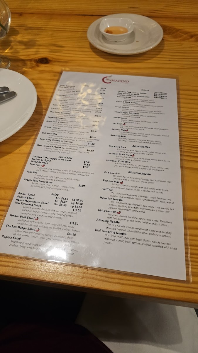 The menu at Thai Tamarind Noodle & Rice offers a welcoming mix of traditional Thai dishes presented with a balance of simplicity and flavor. This is a place where you can enjoy comforting noodle soups like the richly spiced Thai Curry Noodle or the hearty Big Bowl Noodle Soup varieties, perfect for a casual lunch or a relaxed dinner. Lighter options such as fresh spring rolls and crisp salads provide a refreshing contrast and pair well with the warm, inviting ambiance of the restaurant.