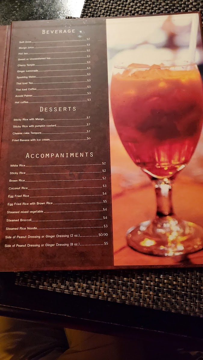The drink selection complements the menu with comforting beverages like the signature Thai Iced Tea, providing a cool, mildly sweet finish to any meal. The atmosphere, described as cozy and calming, encourages guests to savor their food at an easy pace, making each visit feel like a quiet moment away from the everyday.